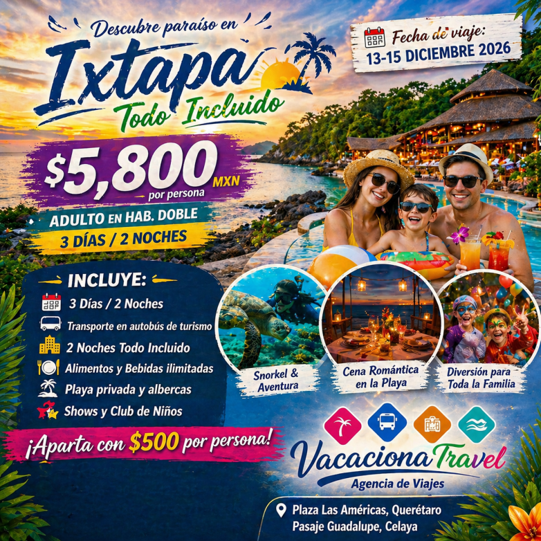 🌴 Escápate al Paraíso: Ixtapa Todo Incluido 3 Días